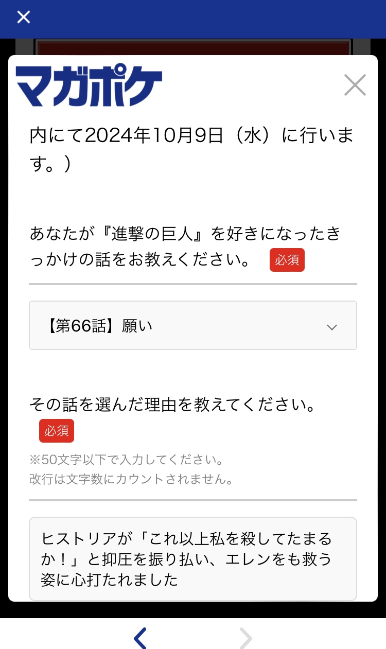 「好きになったきっかけ」になったと思われるポイントはいくつかあるけど、深く刺さった度合いでいうとやっぱり第66話の『願い』だなぁ…進撃の根幹的なテーマを体現しているといまでも思うよ。